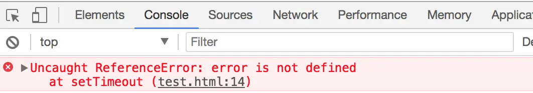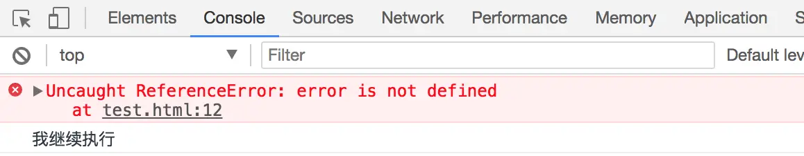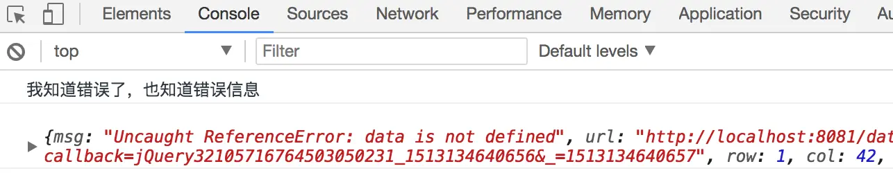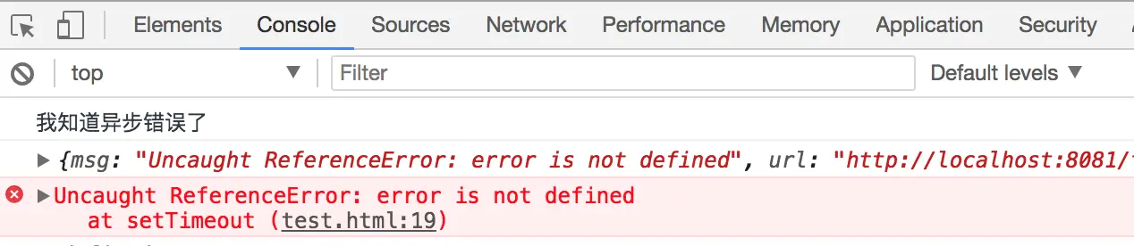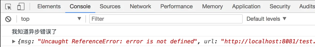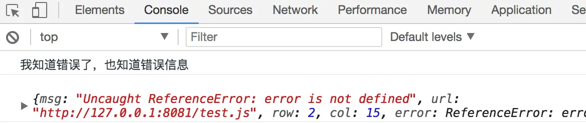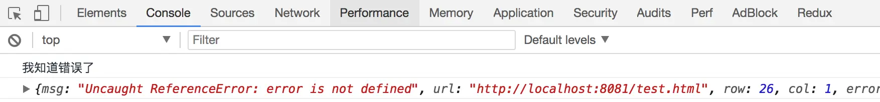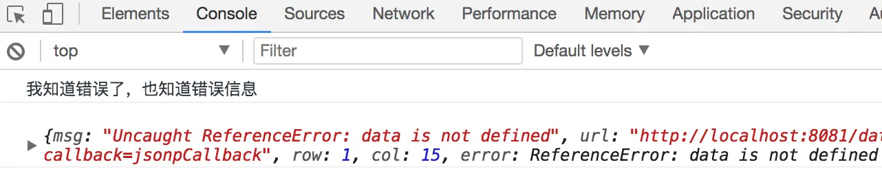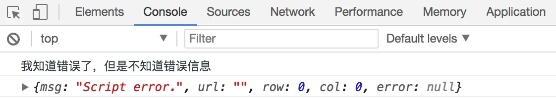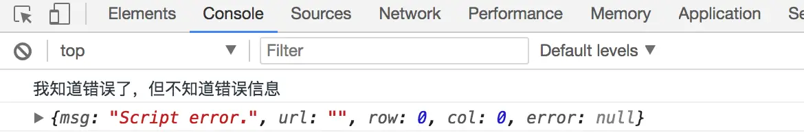 需要注意的是,window.onerror 函数只有在返回 true 的时候,异常才不会向上抛出,否则即使是知道异常的发生控制台还是会显示 Uncaught Error: xxxxx。