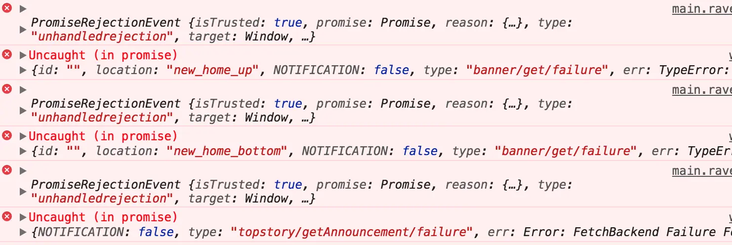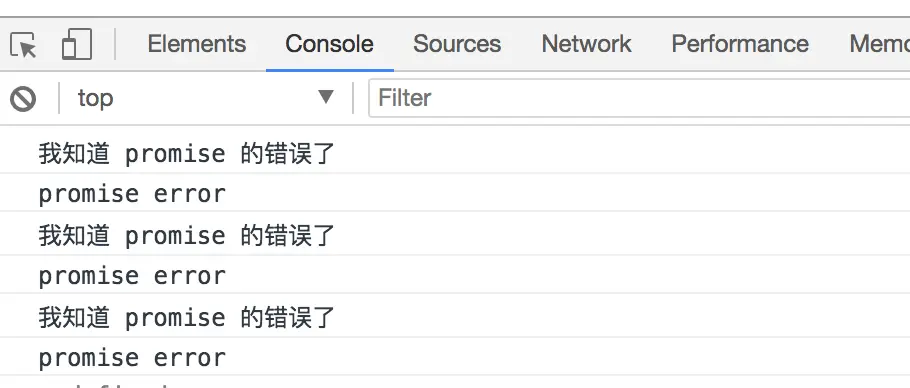 通过 Promise 可以帮助我们解决异步回调地狱的问题,但是一旦 Promise 实例抛出异常而你没有用 catch 去捕获的话,onerror 或 try-catch 也无能为力,无法捕捉到错误。