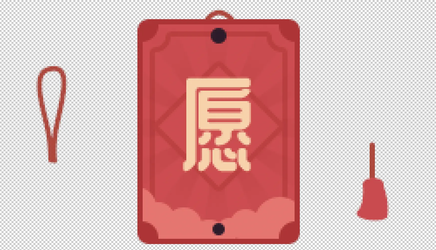 要让动画元素分开运动,首先需要拆分元素。拆分的依据是上面提到的节点,也就是骨骼动画中所谓的关节。例如这个心愿牌就有两个关节,分别在牌的上面和牌的下面,于是我们能拆分出3个动画元素:
