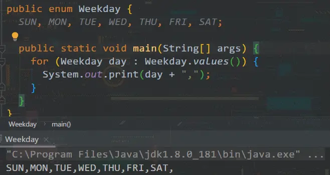 可以发现,每个枚举值都是Weekday类型,SUN(0) <==> new Weekday(0)