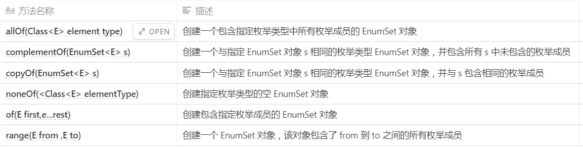 EnumSet 还提供了很多个类型安全的获取子集的 of 方法,使你很容易取得子集: