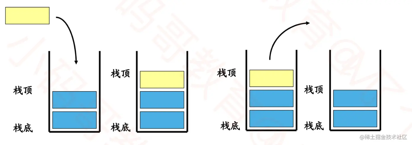 移除元素的操作,一般叫做pop,出栈(只能移除栈顶的元素)。
