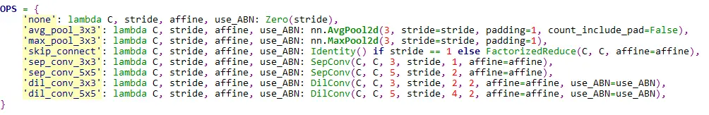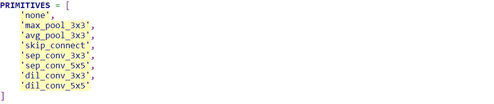 # PRIMITIVES里存放了8种可以采用的layer type名称。