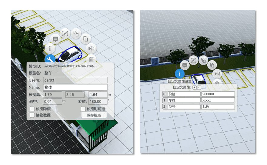 场景提供了层级结构,我们可以通过 “父子树” 和 “分类对象属性树” 来批量控制子物体,比如移动、显示或者透明控制等。
