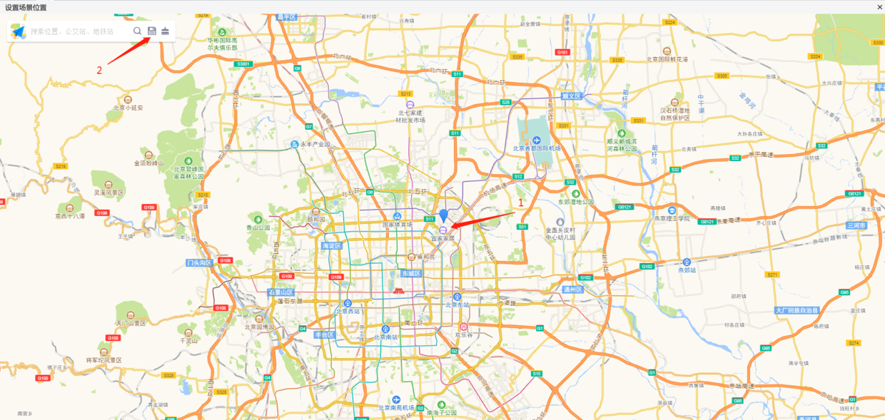 在地图中选择需要摆放的位置后保存,CamBuilder中的场景就会自动同步到ThingJS平台同一账号下。