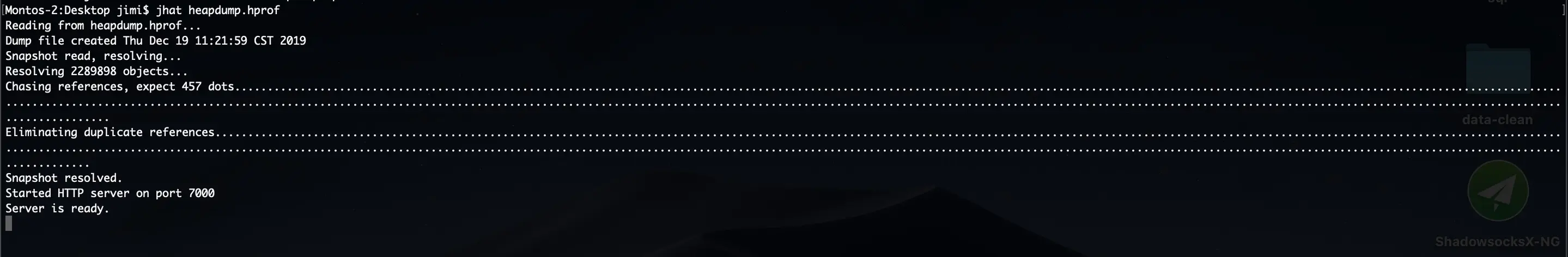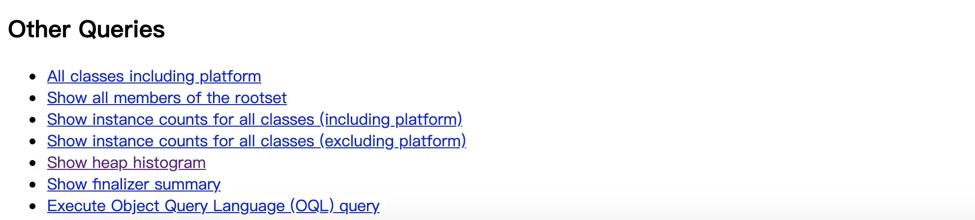 要注意的是,一般不会直接在服务器上进行分析,因为jhat是一个耗时并且耗费硬件资源的过程,一般把服务器生成的dump文件复制到本地或其他机器上进行分析。