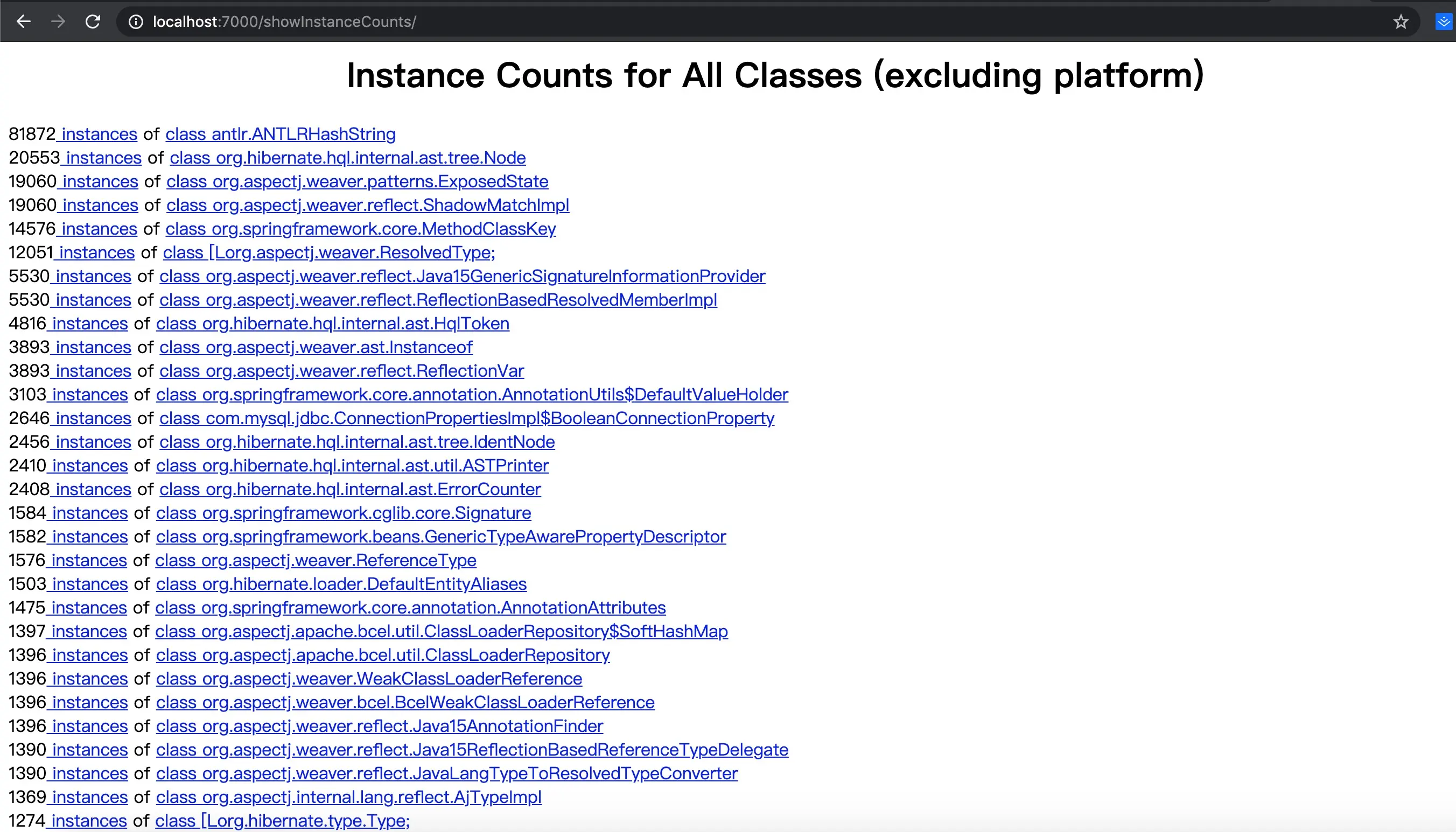 - Show instance counts for all classes(including platform)显示平台包括的所有类的实例数量