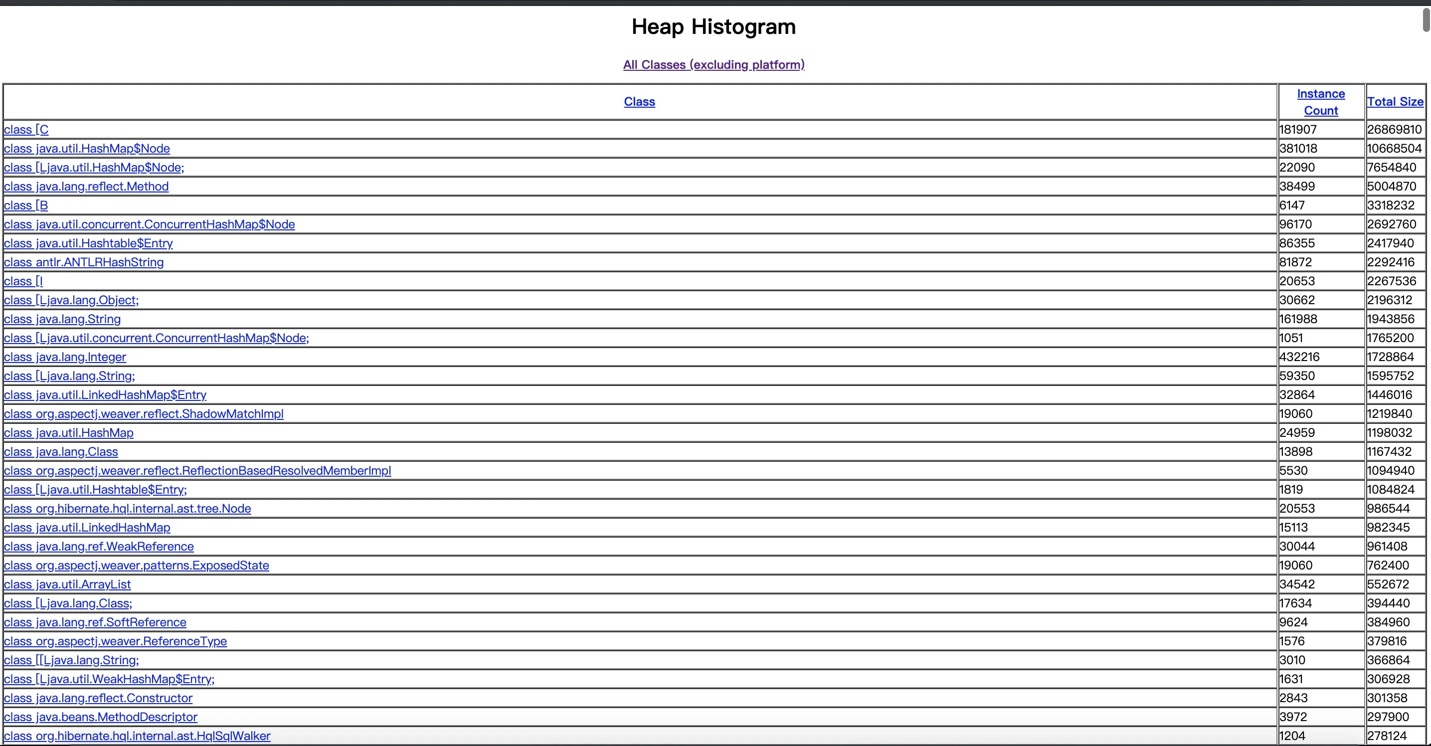 - Show heap histogram,以树状图形式展示堆情况。如下图: