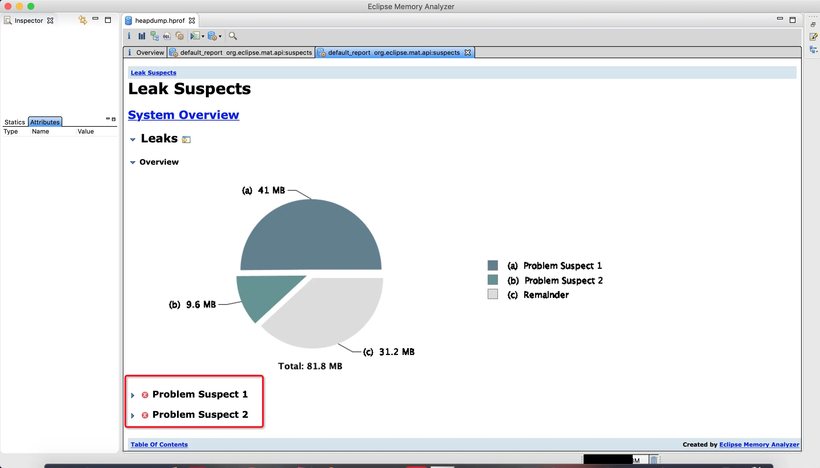 - Leak Suspects通过MA自动分析泄漏的原因。