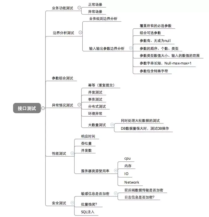 o 接口的参数检查测试,接口的异常测试;