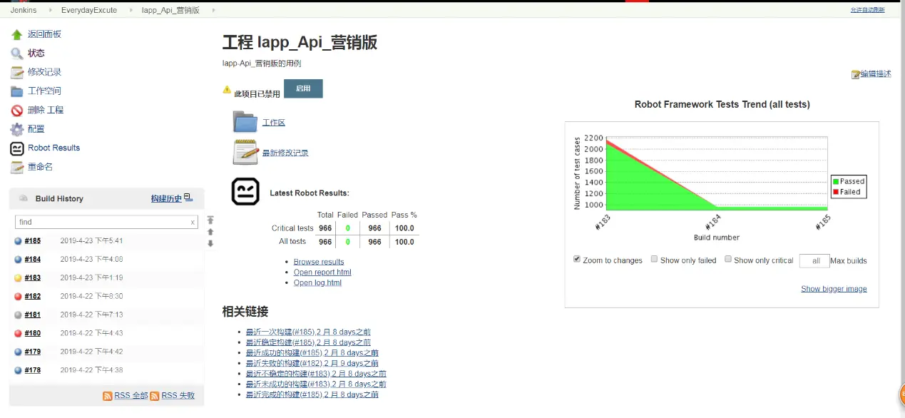 o 创建成功的工程会根据你制定的时间自动构建,执行自动化用例。
