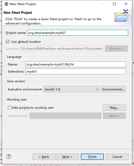 2、新建xtext项目(安装如下图进行配置)