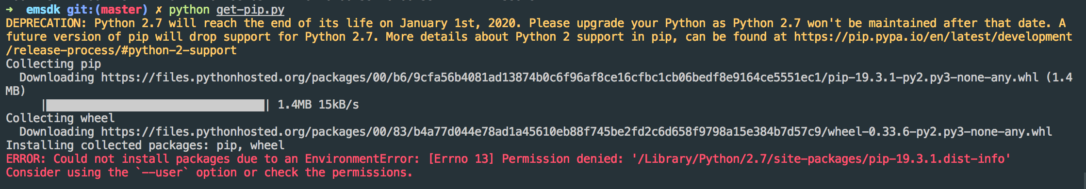 Emscripten SDK (emsdk)是用Python写的, 相关依赖也是从python.org下载,需要有python环境 。首先需要查看本地Python版本,安装 pip ( 官方) 。
