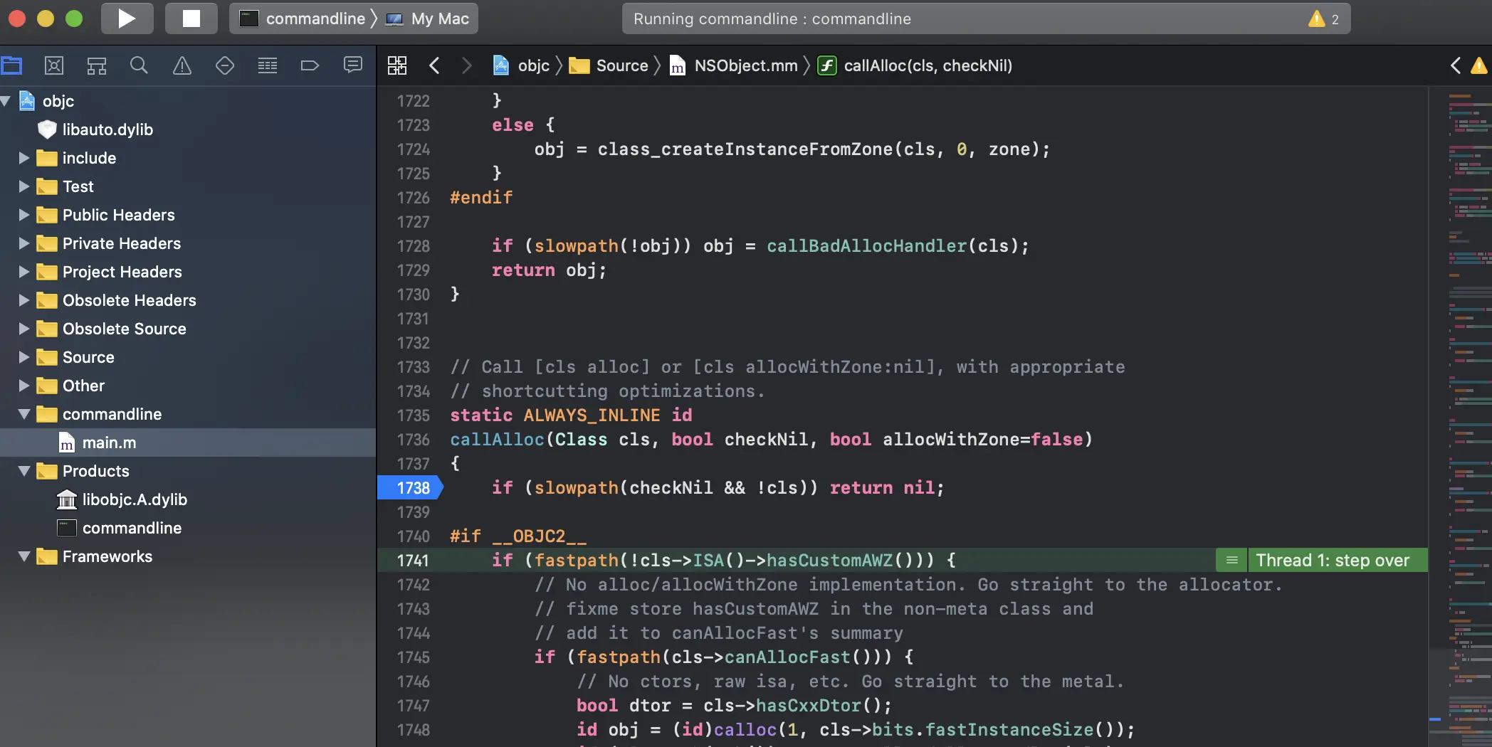编写代码,进入[NSObject alloc]流程,进行解析。
