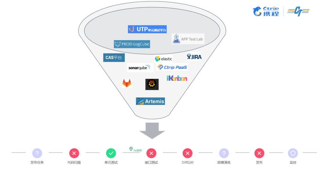 2)携程酒店测试使用的工具和平台很多都是内部研发的,市面上的DevOps平台整合这些工具和平台并没有现成的方案可用。