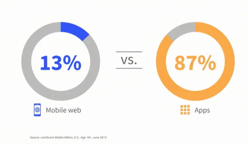 **用户粘性:**用户将大部分时间花在原生APP上,但移动端网页的访问量几乎是原生APP的三倍。 因此,大多数用户都不会长时间去使用移动端网页,它们80%的时间都花在了前三名的原生APP上。