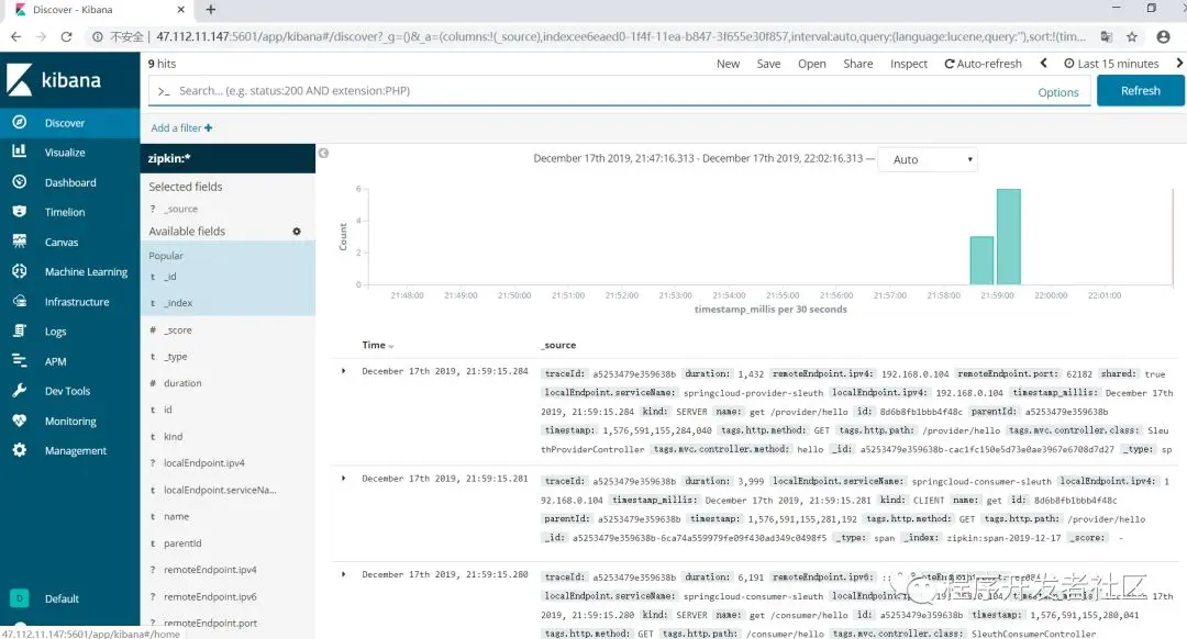 probability: 15、然后访问http://localhost:9090/consumer/hello接口几次,再次访问kibana可以看到索引已经创建了