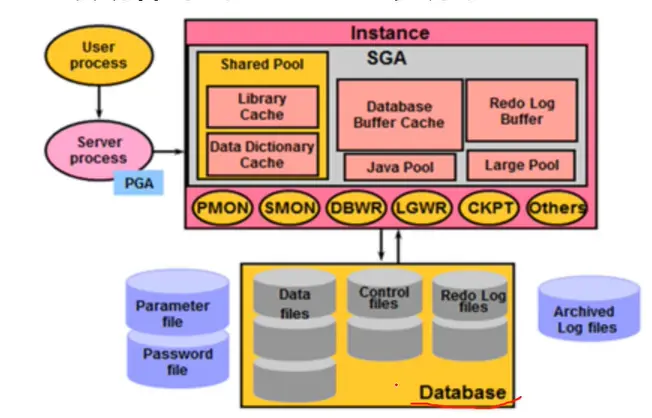 另外,可以从一个或多个实例访问一个数据库,但是一个实例一次只能访问一个数据库。