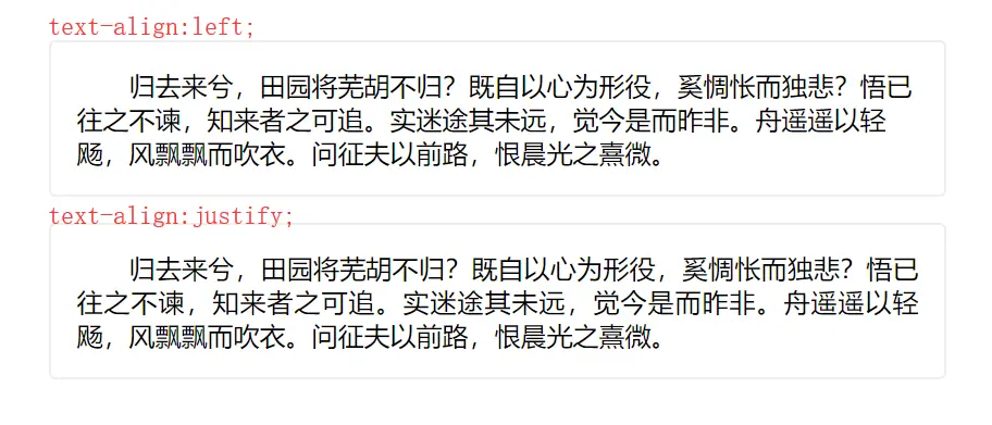 说起text-align,大家一定都不觉得陌生,我们常用关键字left、right、center实现行内元素相对父元素左、右、居中对齐,当然我们也使用justify来实现文本两端对齐。