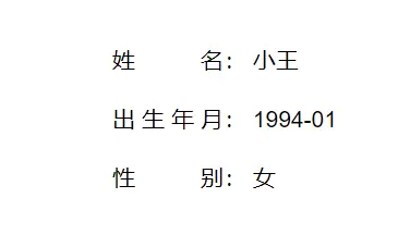 如上图,两端对齐相对于左对齐,视觉上显得整齐有序。但justify对最后一行无效,通常这样的排版对整段文字是极好的,我们并不希望当最后一行只有两个字时也两端对齐,毕竟这是不便于阅读的,那么当我们只有一行文本,但要实现单行文本两端对齐怎么解决(如下图的表单项效果)?