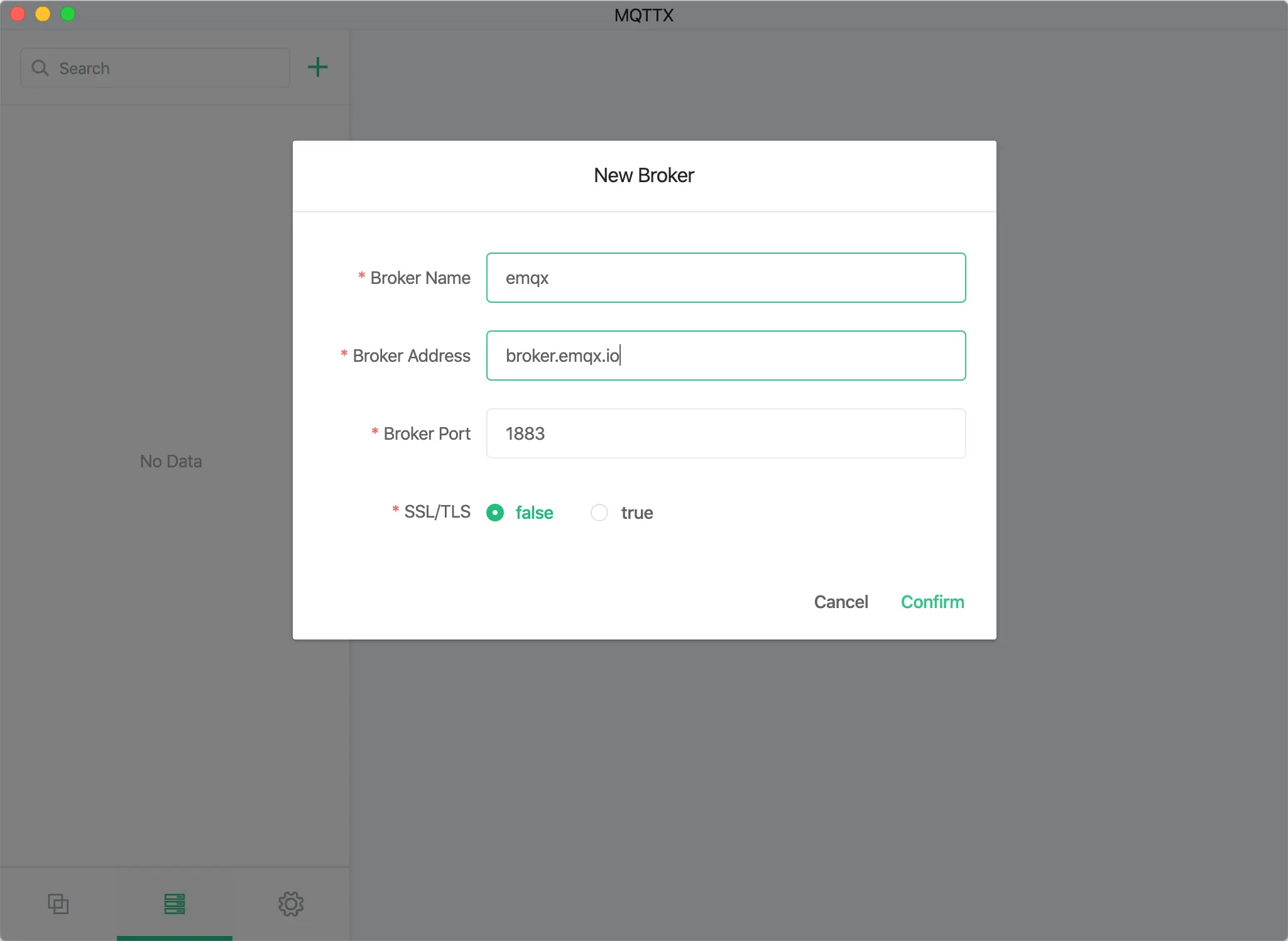 如果你暂时没有一个可用的 MQTT Broker,EMQ X 提供了一个公共 Broker 地址用于测试:broker.emqx.io:1883。