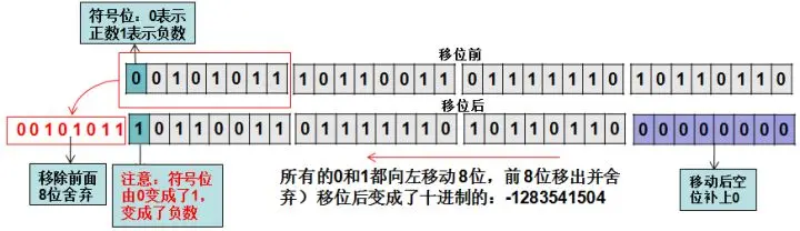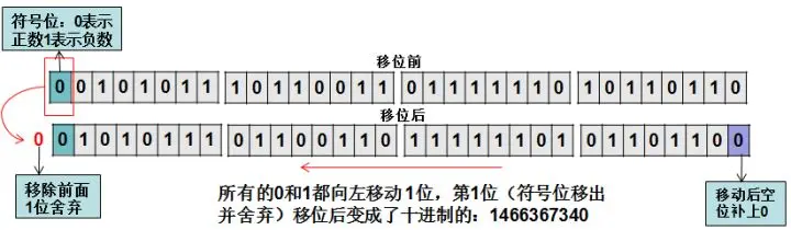 左移运算符:<< 先随便定义一个int类型的数int,十进制的value = 733183670,转换成二进制在计算机中的表示如下: