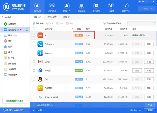 (8)安装IPA到手机进行测试(推荐使用爱思助手安装)