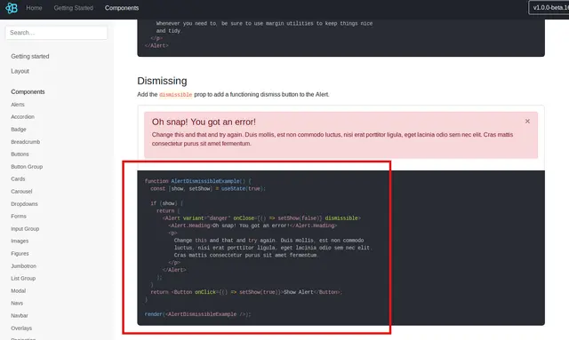 现在React Bootstrap的作者重写了JS部分的代码,使其能与React兼容。因此,你现在就可以像使用React组件一样使用它的组件了: