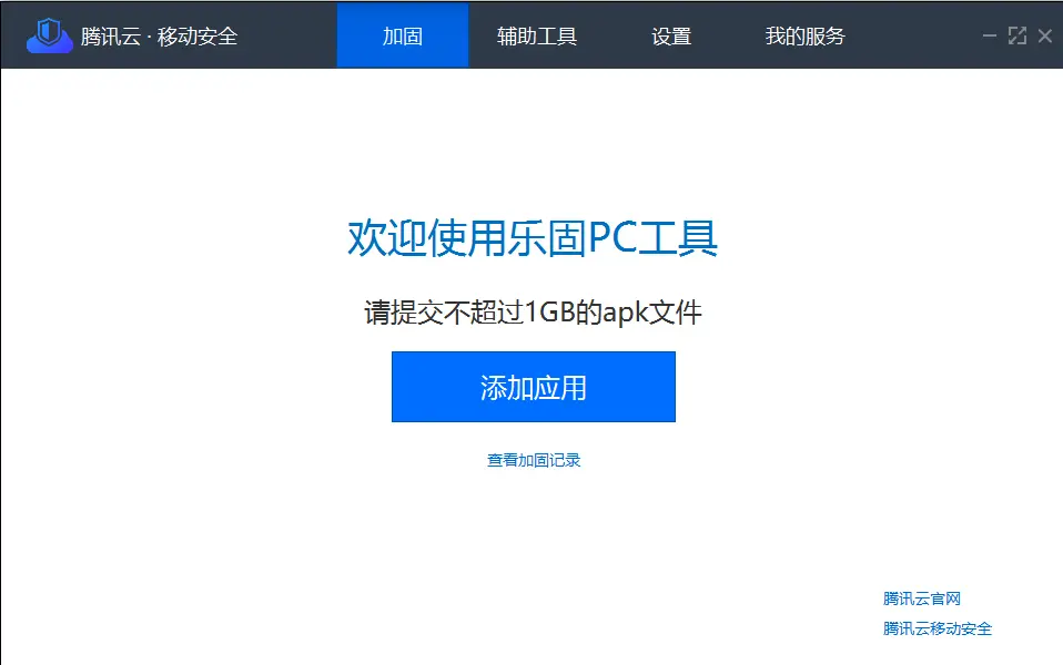 (3)安装乐谷加固 为了保护我们的劳动成果和知识产权,必须对APK对加固工作,否则极易被人破解、篡改,二次打包。市面上当前做加固的有很多家,实际使用了腾讯乐固和360加固(看了网易也有易盾,但是因为只能试用,所以没试)。本文介绍腾讯乐固的使用方法。 首先点击下载 乐固加固,使用微信登陆即可。