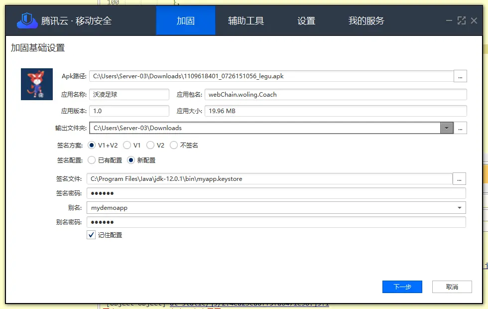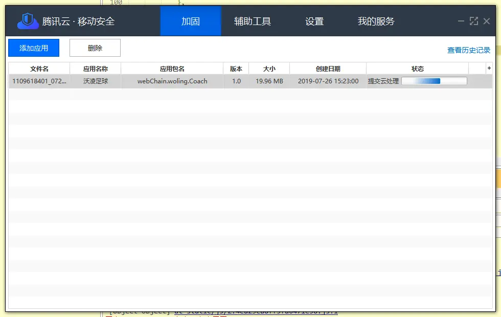 提交完成后,会自动下载到同名文件下,我们只需将生成好的加固文件(包含签名的一个)上传到腾讯应用宝即可