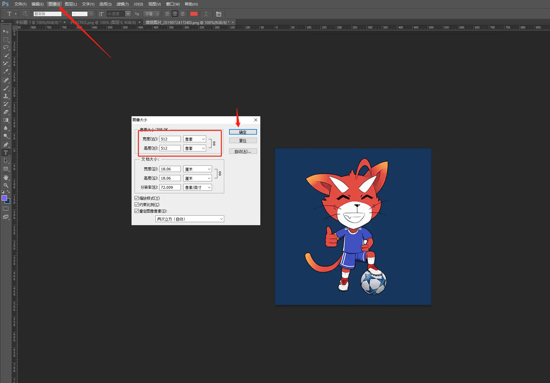 注: 可通过ps直接修改:点击图像 --》图像大小然后改为相应像素;