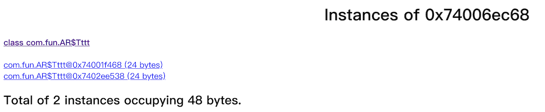 使用jhat -port 8001 1这样的命令即可启动一个服务,然后访问http://localhost:8001/看到堆内存使用情况。