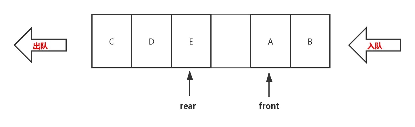 如下图,每次有新的数据加入后,队尾rear就往后移动一位,很快队尾就到达数组的边界了,无法再添加数据了,此时的队列中可能有部分数据出队了,实际队列中可能只存在几个数据。这该怎么办?