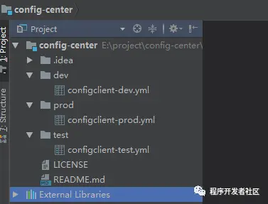 远程码云仓库gitee.com/coding-farm…中有3个文件夹,分别是dev,prod,test,里面存放着相应环境的配置文件