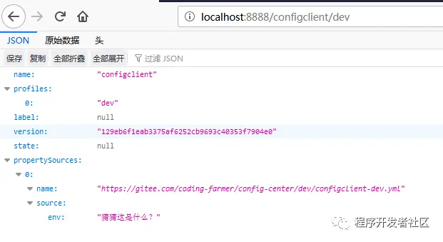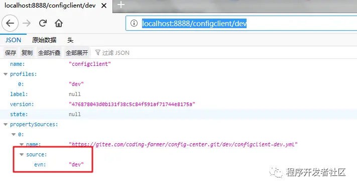1-7、访问:http://localhost:8888/configclient/dev,显示如下则加密成功