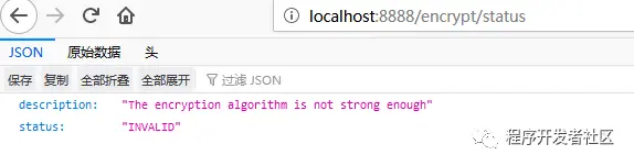 key: coding-farmer加入上述配置信息后,重启配置中心,再访问/encrypt/status端点,我们将得到 如下内容:
