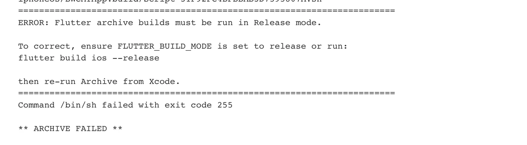 这个错误信息还是很好理解的,在xcode_backend.sh也做了详细的注释,就是构建的时候用了xcode中配置的configration,flutter只支持Debug/Profile/Release这三种,而且构建的时候只能用release,导致了构建失败。