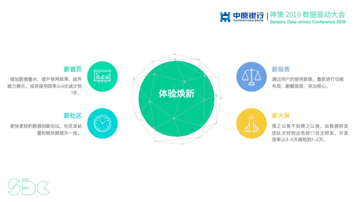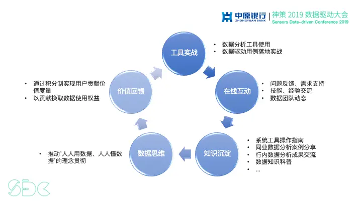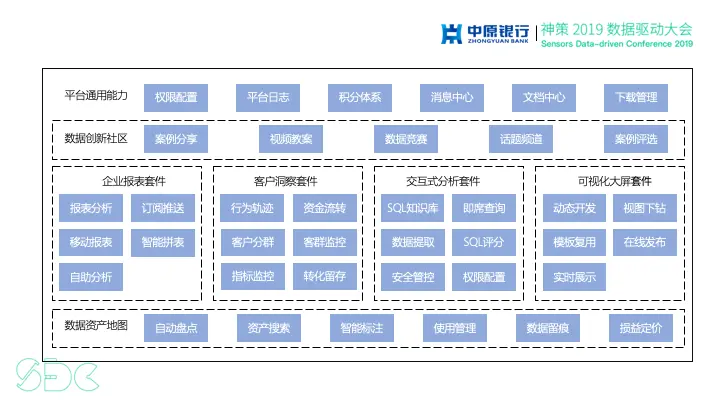 在以“矩·变”为主题的神策 2019 数据驱动大会现场,中原银行数据银行部胡成君发表了名为《从以数据为中心到以用户为中心——智能化 BI 体系建设实践》的主题演讲,以下内容根据他的现场演讲内容整理所得。