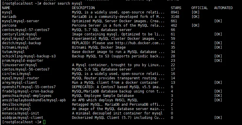 OPTIONS 说明 --automated :只列出 automated build类型的镜像; --no-trunc :显示完整的镜像描述; -s :列出收藏数不小于指定值的镜像