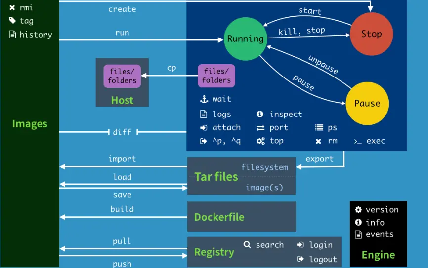 | version | Show the docker version information | # 查看 docker 版本号 |