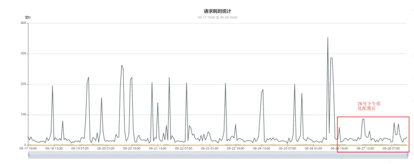 优化前后时延对比如下(注: 该集群有几个业务同时使用,优化前后时延对比如下):