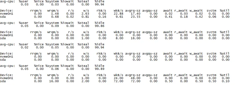 从上图可以看出磁盘为nvMe的ssd盘,查看相关数据可以看出该盘IO性能很好,支持每秒2G写入,iops能达到2.5W/S,而我们线上的盘只能每秒写入最多500M。