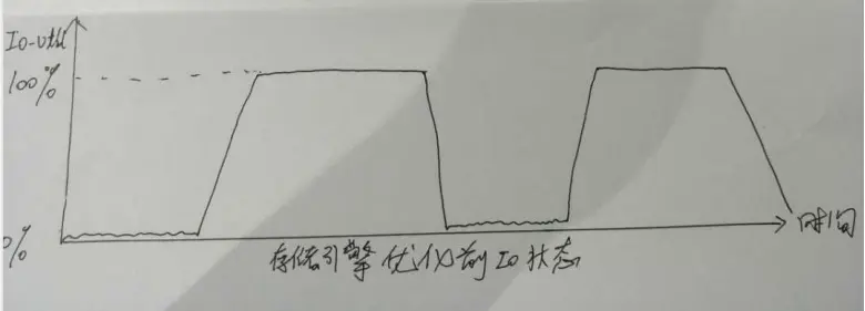 从上面的io负载图可以看出,之前的IO一会儿为0%,一会儿100%现象有所缓解,总结如下图所示: