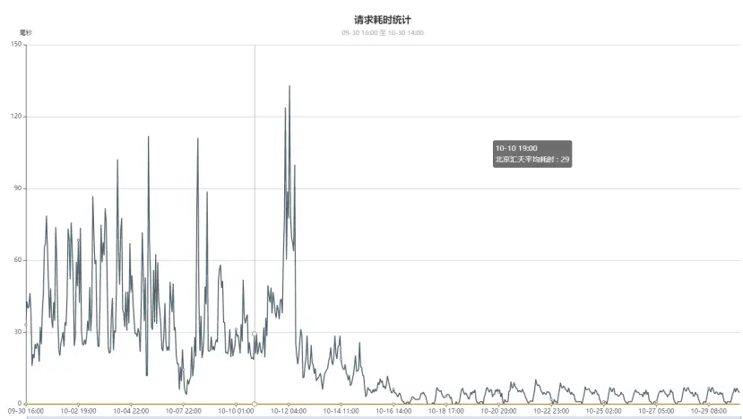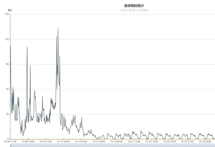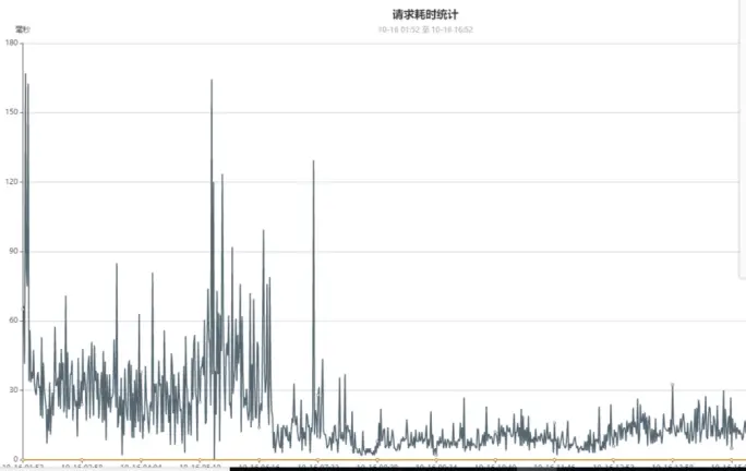 从上图可以看出,存储引擎优化后时间延迟进一步降低并趋于平稳,从平均80ms到平均20ms左右,但是还是不完美,有抖动。