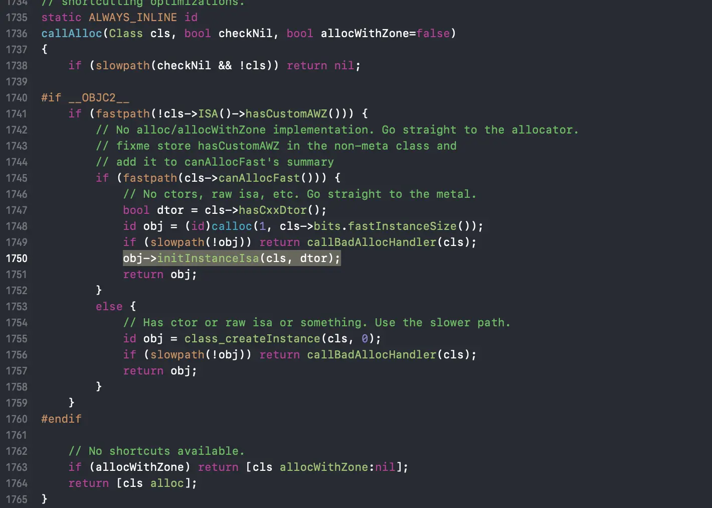 之前我们分析对象alloc 流程的时候,调用calloc 内部的实现,会看到obj->initInstanceIsa(cls, dtor);代码