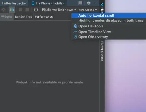 1.1 选择 View > Tool Windows > Flutter Inspector。