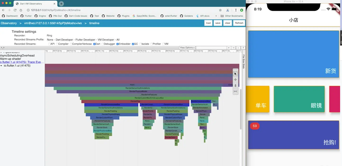 如果性能图层的 UI 图表显示红色,就要从分析 Dart VM 开始着手了,即使 GPU 图表同样显示红色。