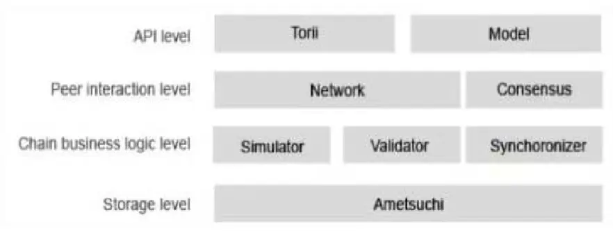 以下是具有sumeragi共识算法的hyperledger iroha体系结构。hyperledger iroha的功能是它的互操作性,这是一个开放源代码库,可以满足开发人员的需求和业务需求。该架构是从API、对等方交互、链业务逻辑和存储开始的不同组件的分层视图