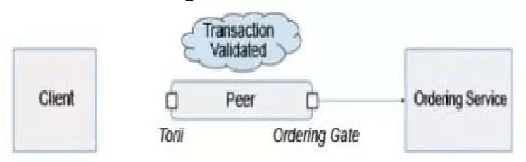 验证后,事务首先被路由到Ordering Gate,Ordering Gate创建控制计划以连接订购服务
