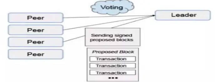 使用YAC[6]共识逻辑从一组对等方中选出一位领导者,然后由节点通过将其提议的区块及其签名转发给领导者来投票